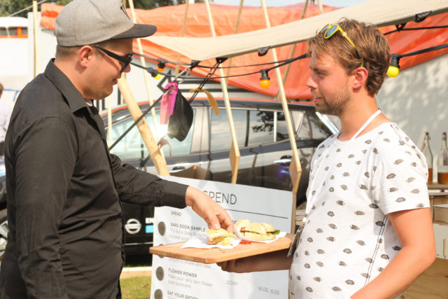 All of this sustainable action was encouraged by the array of rewards on offer: polaroid pictures were popular with kids and adults alike, you could try an edible spoon or even sample one of the many food futures in an insect burger which went down a treat with a cold beer. We also wanted to see how generous the festival crowd was, so people also had the option to donate their ECOs to a community reward in the form of solar panels. Research was carried out on finding out people's motivation to take part, which we will also share soon.